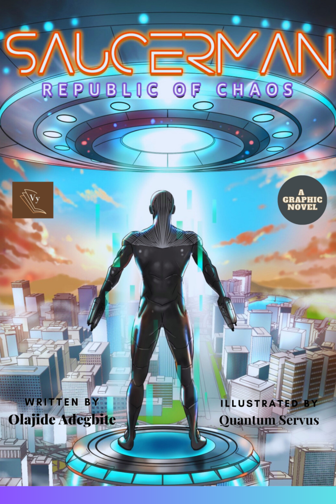 Join the adventure as we unravel the powers, the players and the patriots of a chaotic republic in a graphic novel titled ”Saucerman, Republic of Chaos”